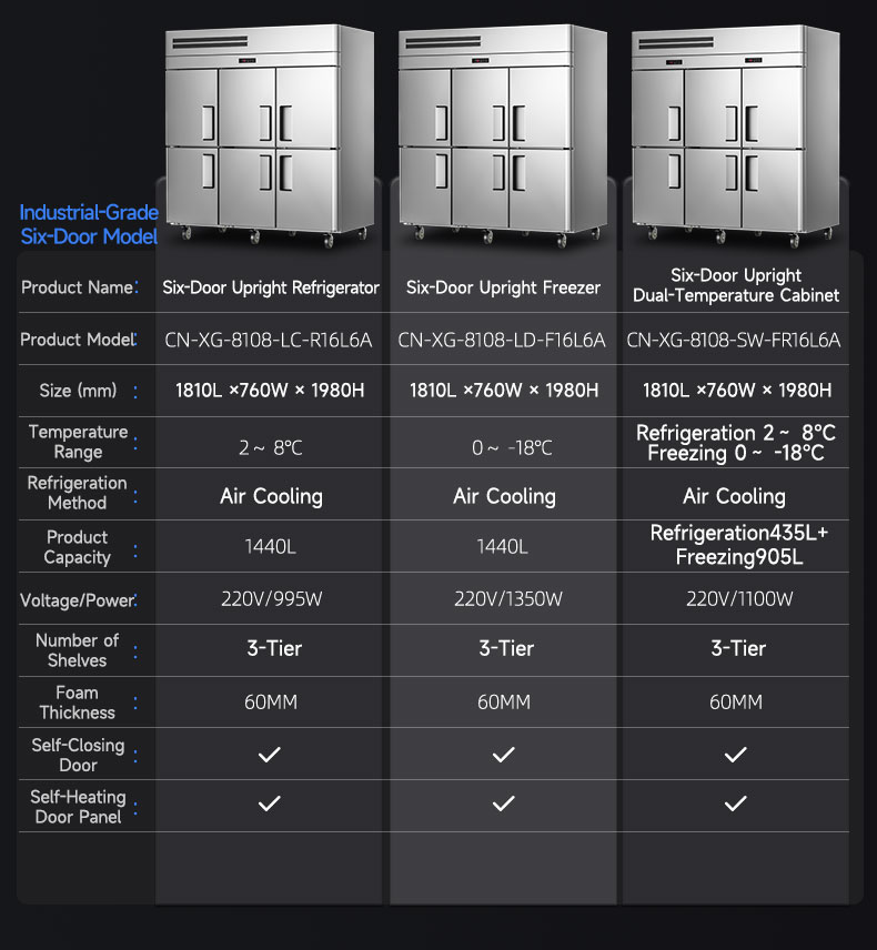 Six-Door Vertical Dual-Temperature Cabinet